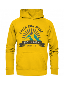 Preis 32,95 €FAITH CAN MOVE MOUNTAIN - Matth. 17, 20 Kinder Hoodie, rundhals, Set-In Ärmel, keine Kordel, 280 g/m², 80 % Baumwolle, 20 % Polyester