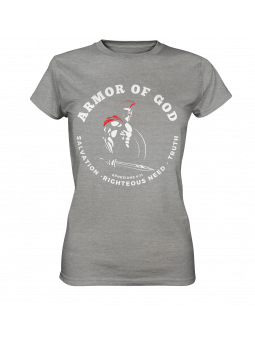 Christliches T-Shirt für Frauen - ARMOR OF GOD - Die Rüstung Gottes Damen T-Shirt, Rundhals, 185 g/m², 100 % Baumwolle (ringgesponnen) / Ash: 99 % Baumwolle, 1 % Viskose / Sport Grey: 85 % Baumwolle, 15 % Polyester