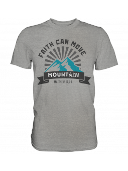 Preis 24,95 €FAITH CAN MOVE MOUNTAIN - Matth. 17, 20 Unisex T-Shirt, Rundhals, 185 g/m², 100 % Baumwolle (ringgesponnen) / Ash: 99 % Baumwolle, 1 % Viskose / Sport Grey: 85 % Baumwolle, 15 % Polyester