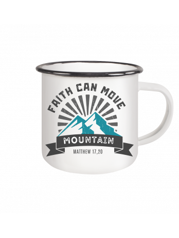 Preis 19,95 €FAITH CAN MOVE MOUNTAIN - Matth. 17, 20 Keramiktasse Hochweiß, glänzende Oberfläche, Höhe 96mm, Ø 80mm, Fassungsvermögen ca. 330ml