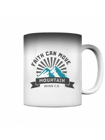 Preis 16,95 €FAITH CAN MOVE MOUNTAIN - Matth. 17, 20 Farbwechseltasse aus Keramik mit Magic-Thermo-Effekt, Höhe 96mm, Ø 80mm, Fassungsvermögen ca. 330ml