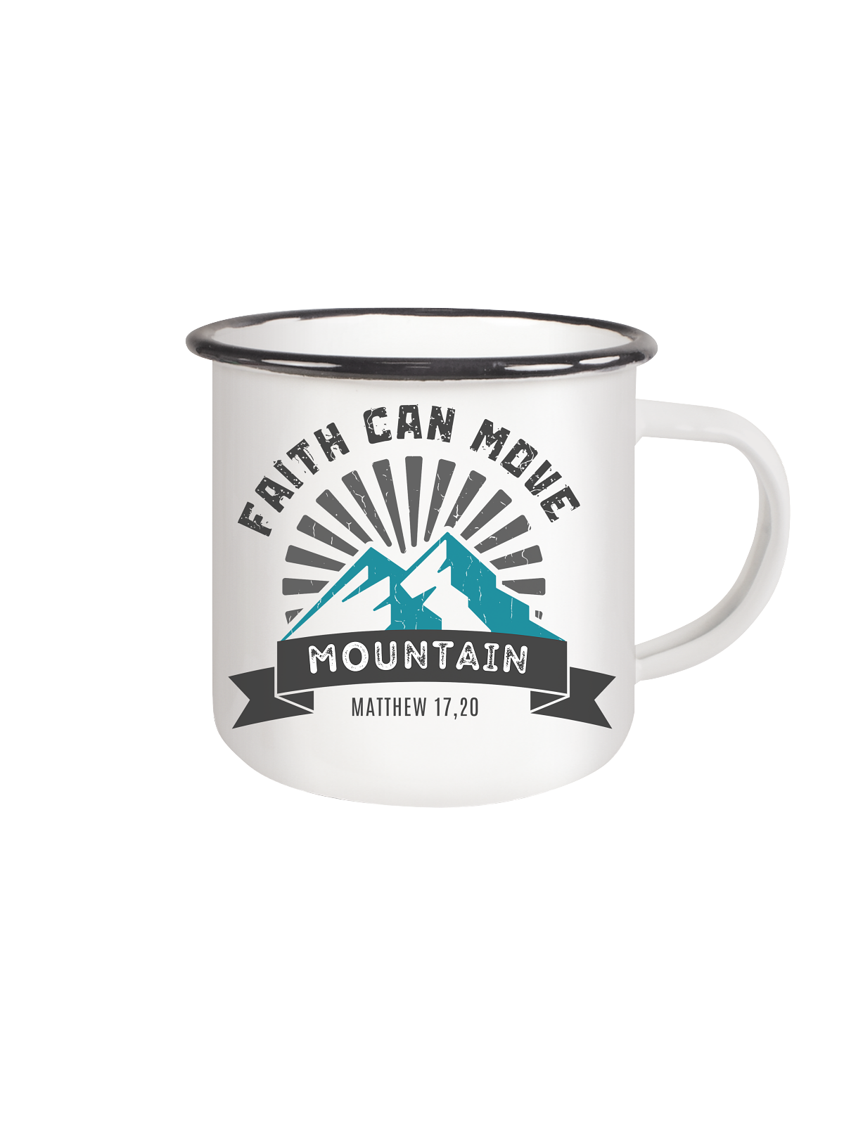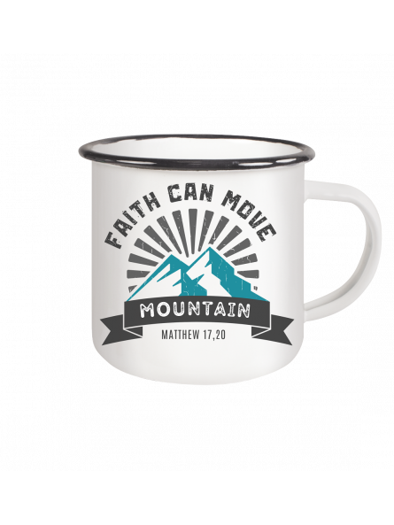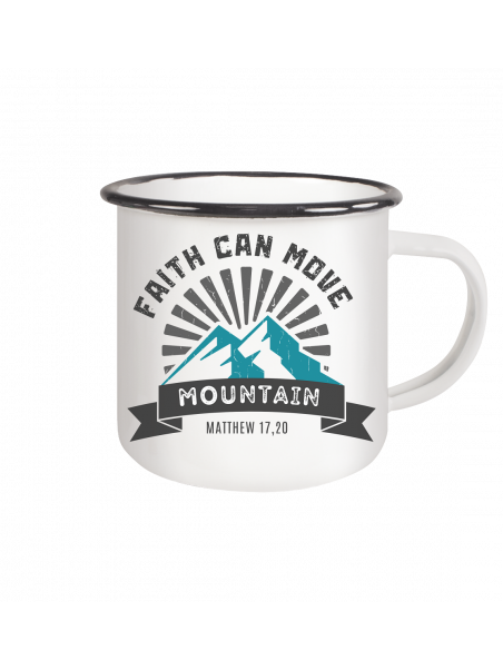 FAITH CAN MOVE MOUNTAIN - Matthew 17,20 - Emaille Tasse (Black)